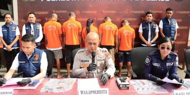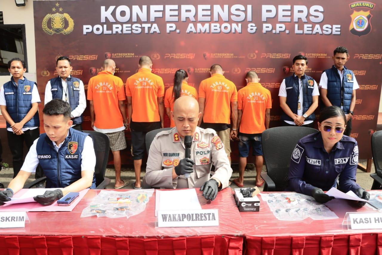 Dari kelima tersangka tersebut, satu di antaranya merupakan penada barang hasil curian berinisial AP. Demikian disampaikan Wakapolresta Pulau Ambon dan Pp Lease, AKBP Nur Rahman, S.I.K., M.M, didampingi Kasat Reskrim AKP. Ryando E. Lubis, S.I.K., M.H, Kasi Humas Ipda Janet Luhukay, dan Kanit Buser Satreskrim Ipda Azhari Lallo saat digelarnya konferensi pers di Mapolresta Ambon, Rabu (4/6/2025).