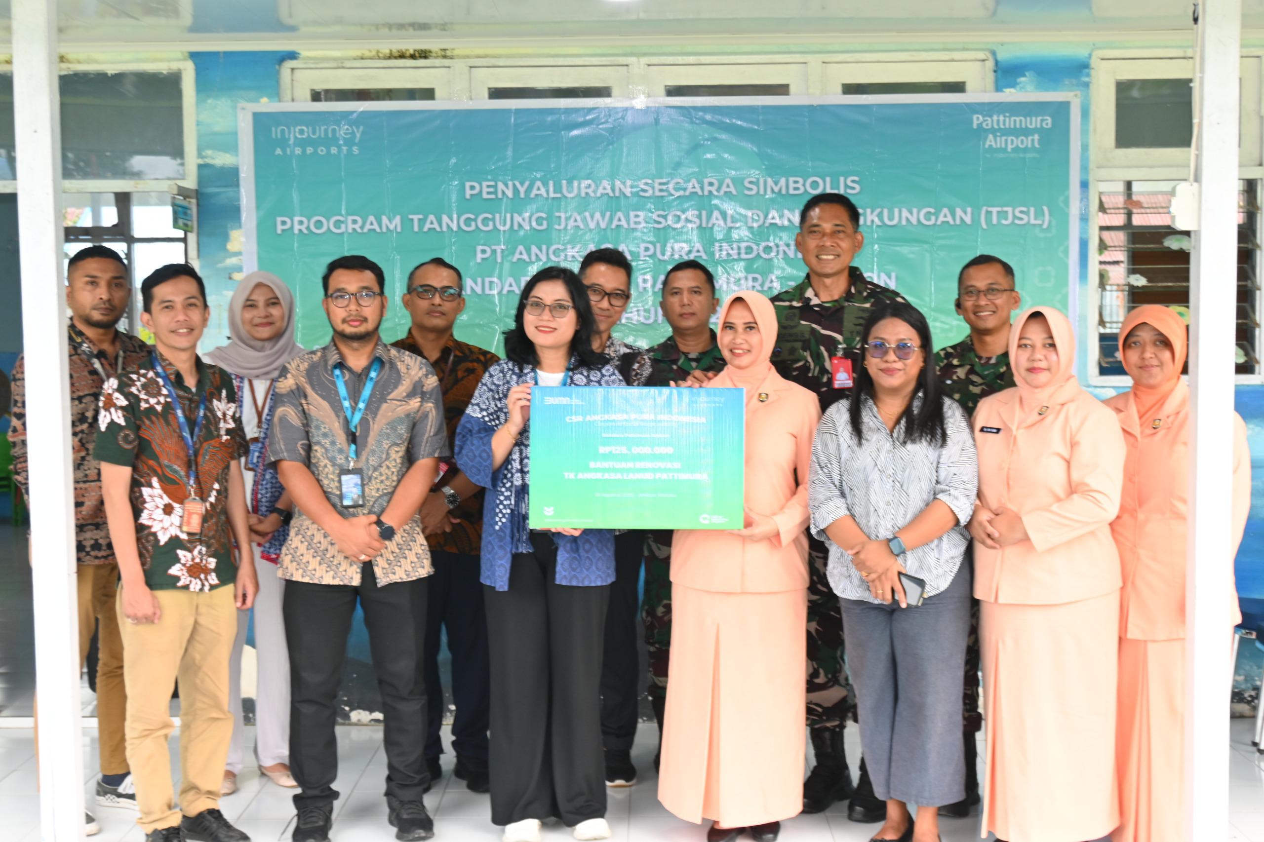 REFMAL.ID,-AMBON – Dalam rangka pelaksanaan Program Tanggung Jawab Sosial dan Lingkungan (TJSL) Tahun 2025, PT Angkasa Pura Indonesia melalui Bandara Pattimura Ambon kembali menunjukkan kepeduliannya terhadap pembangunan sosial dan pendidikan di lingkungan sekitar bandara. Melalui program bertajuk “Injourney Airports Renovasi Sekolah”, PT Angkasa Pura Indonesia menyalurkan bantuan renovasi sekolah senilai Rp125.000.000 kepada TK Angkasa Lanud Pattimura.