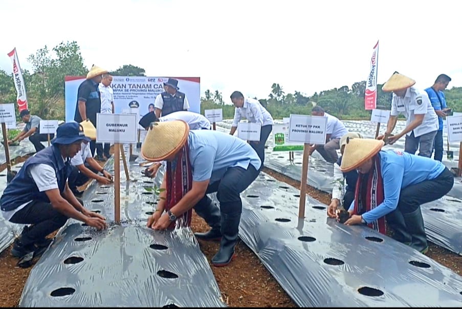 Pemerintah Provinsi Maluku melalui Dinas Pertanian Maluku bersama 11 pemerintah kabupaten/kota di wilayah ini secara daring, melakukan penanaman cabai secara serempak dipimpin langsung Gubernur Maluku Hendrik Lewerissa, Rabu (13/8/2025).