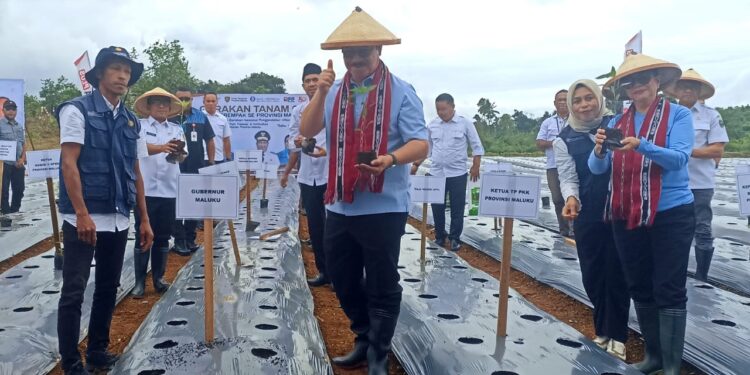 REFMAL.ID, Ambon – Di bawah langit cerah Dusun Telaga Kodok, Kecamatan Leihitu, Kabupaten Maluku Tengah, Maluku, hamparan tanah seluas 1,5 hektare menjadi saksi awal sebuah gerakan yang diharapkan mampu menekan laju inflasi di “Bumi Raja-Raja”.
