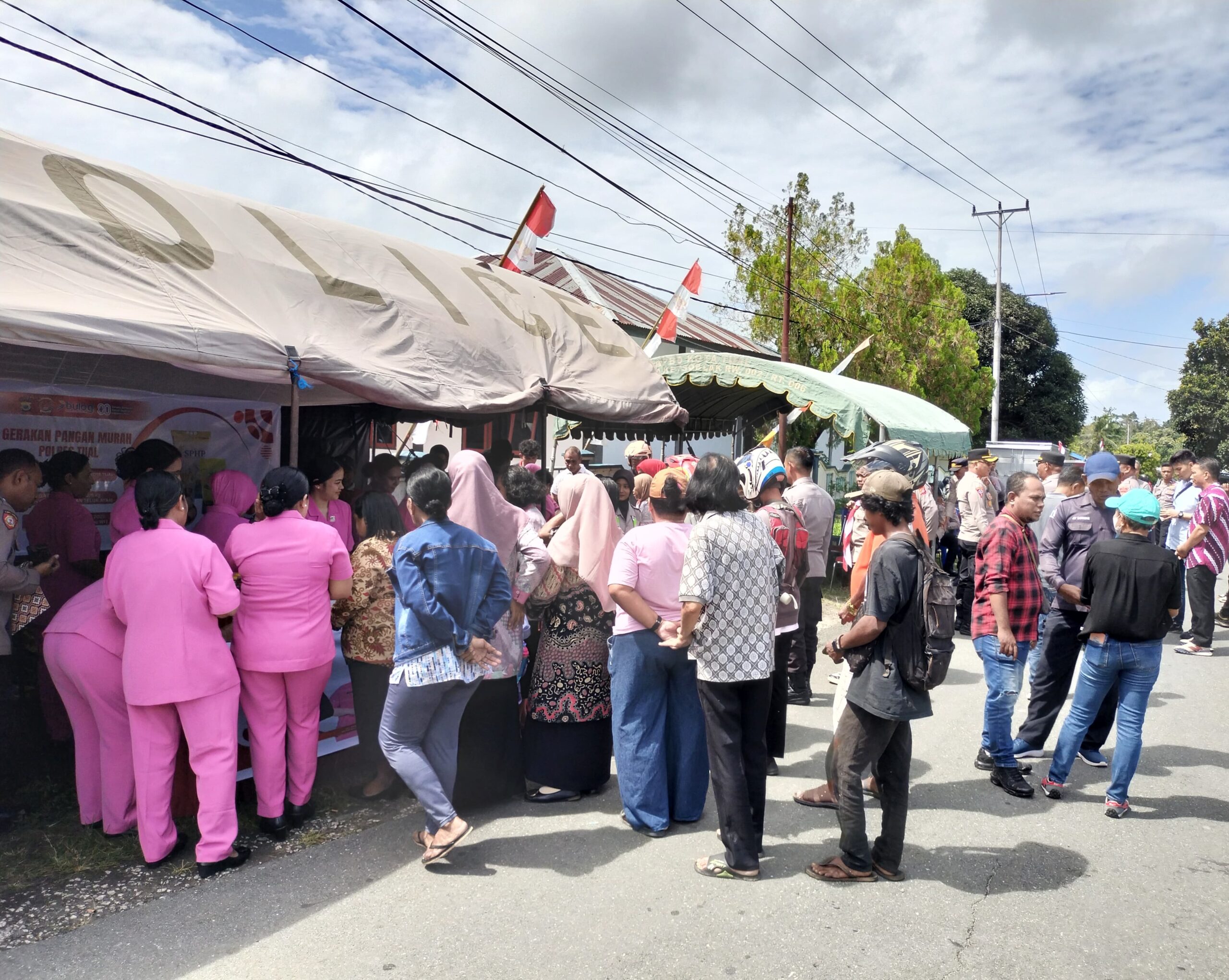 REFMAL.ID,-TUAL- Kepolisian Resor (Polres) Tual menggelar Gerakan Pangan Murah di area samping Sanggar Kegiatan Belajar (SKB) kawasan Un Kota Tual, Kamis (14/8/2025).