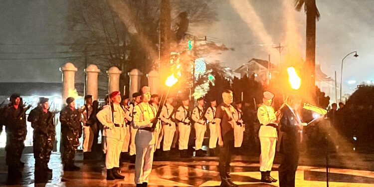REFMAL.ID, Ambon – Di bawah derasnya hujan malam yang membasahi “Bumi Pattimura”, dan dalam cahaya obor yang menyala syahdu, Pemerintah Provinsi Maluku menggelar Apel Kehormatan dan Renungan Suci untuk mengenang jasa para pahlawan bangsa.