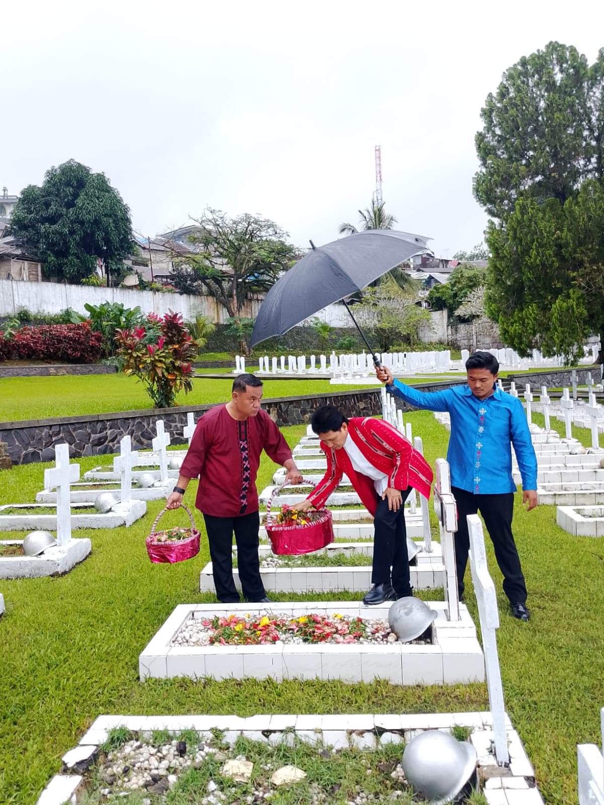 Usai mengheningkan cipta, Sadali melangkah mantap ke tugu pahlawan, meletakkan karangan bunga sebagai ungkapan hormat dan terima kasih yang tak terhingga. Langkah itu diikuti dengan prosesi tabur bunga ke setiap pusara, dimulai oleh Sekda Sadali, kemudian secara bergantian oleh jajaran Forkopimda serta pimpinan OPD.
