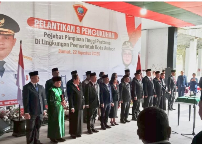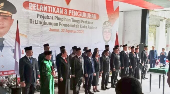 Acara pelantikan pejabat struktural berlangsung di Transit Paso, Kecamatan Teluk Baguala, Kota Ambon, Jumat (22/8/2025).