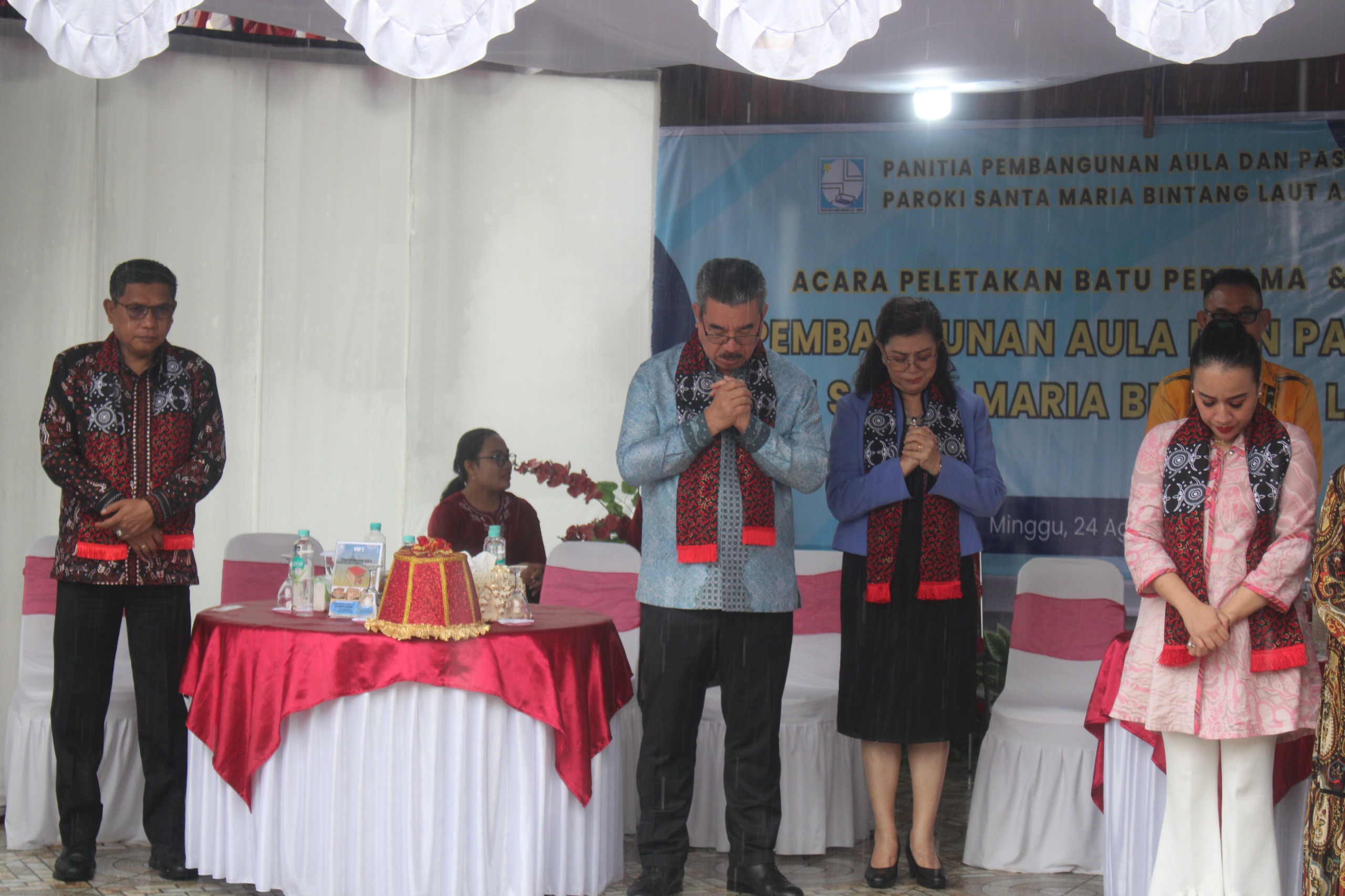 REFMAL.ID, Ambon,- Gubernur Maluku Hendrik Lewerissa menghadiri Peletakan batu pertama sebagai tanda dimulainya pembangunan Aula Pastoran Gereja Santa Maria Bintang Laut (MBL) Soakacindan Ambon bertempat di Gereja Katolik Santa MBL, Minggu (24/8/2025).