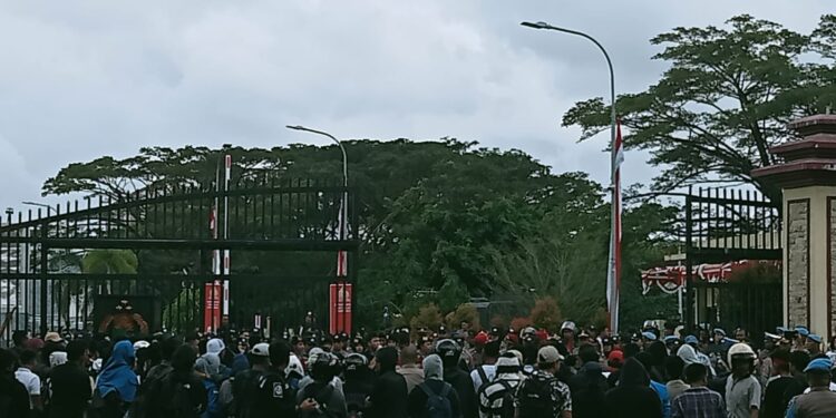 REFMAL.ID,-Ambon – Sejumlah organisasi Kepemudaan (OKP) dan mahasiswa Cipayung Plus melakukan demonstrasi di depan Markas Besar Kepolisian Daerah (Polda) Maluku, Senin (1/9/2025).