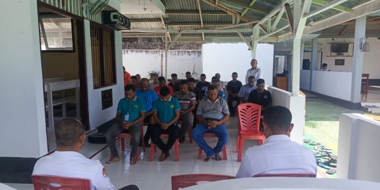 REFMAL.IID,-Langgur – Lembaga Pemasyarakatan (Lapas) Kelas IIB Tual, Kantor Wilayah Ditjenpas Maluku, bekerja sama dengan Kementerian Agama Kabupaten Maluku Tenggara menggelar kegiatan pembinaan kerohanian bagi warga binaan pemasyarakatan (WBP), Selasa (9/8/2025).