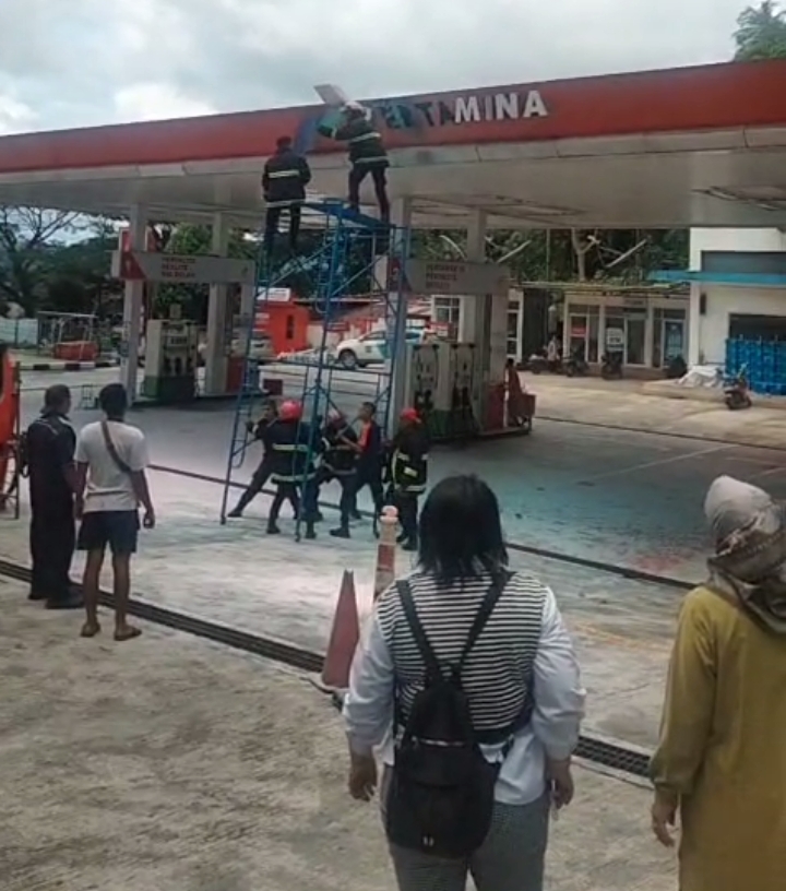 Insiden itu terjadi sekitar pukul 13.15 WIT, kosleting listrik terjadi bagian atap tepatnya papa nama my Pertamina dan akibat arus pendek tersebut terjadinya kobaran api.