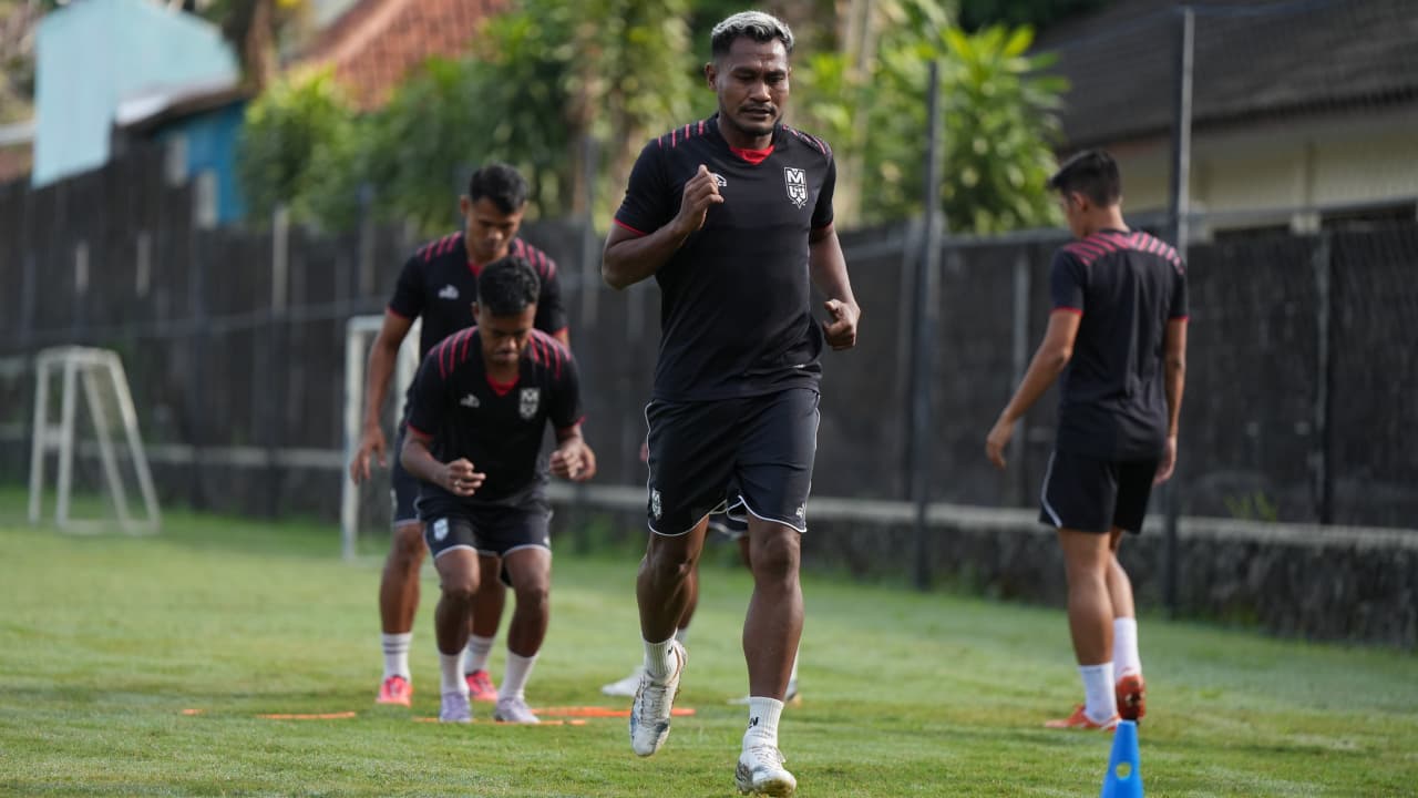 Pemain Malut United, Safrudin Tahar, tampak antusias kembali berkumpul dan berlatih bersama rekan-rekan setimnya.