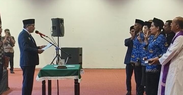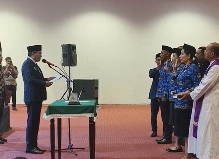 Pelantikan tersebut diawali dengan pembacaan Surat Keputusan Walikota Ambon dan diikuti oleh pengambilan sumpah dan janji yang dipimpin oleh Walikota.