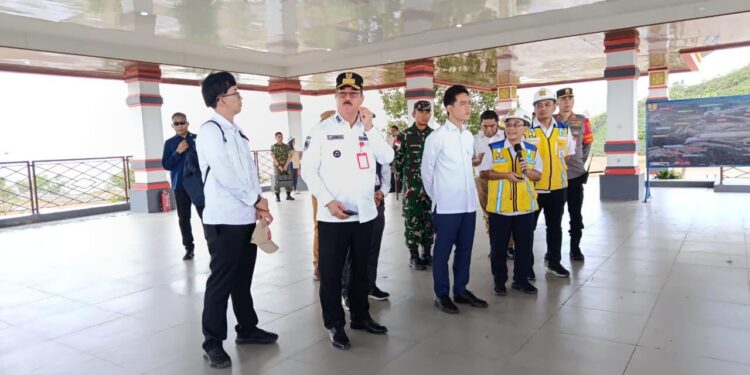 Sesampainya di Way Apu, Wapres Gibran dan Gubernur Lewerissa turun langsung meninjau area inti bendungan, memantau dinding utama dan kawasan genangan, serta mendengarkan paparan teknis dari pihak kontraktor pelaksana, PT PP (Persero) Tbk.
