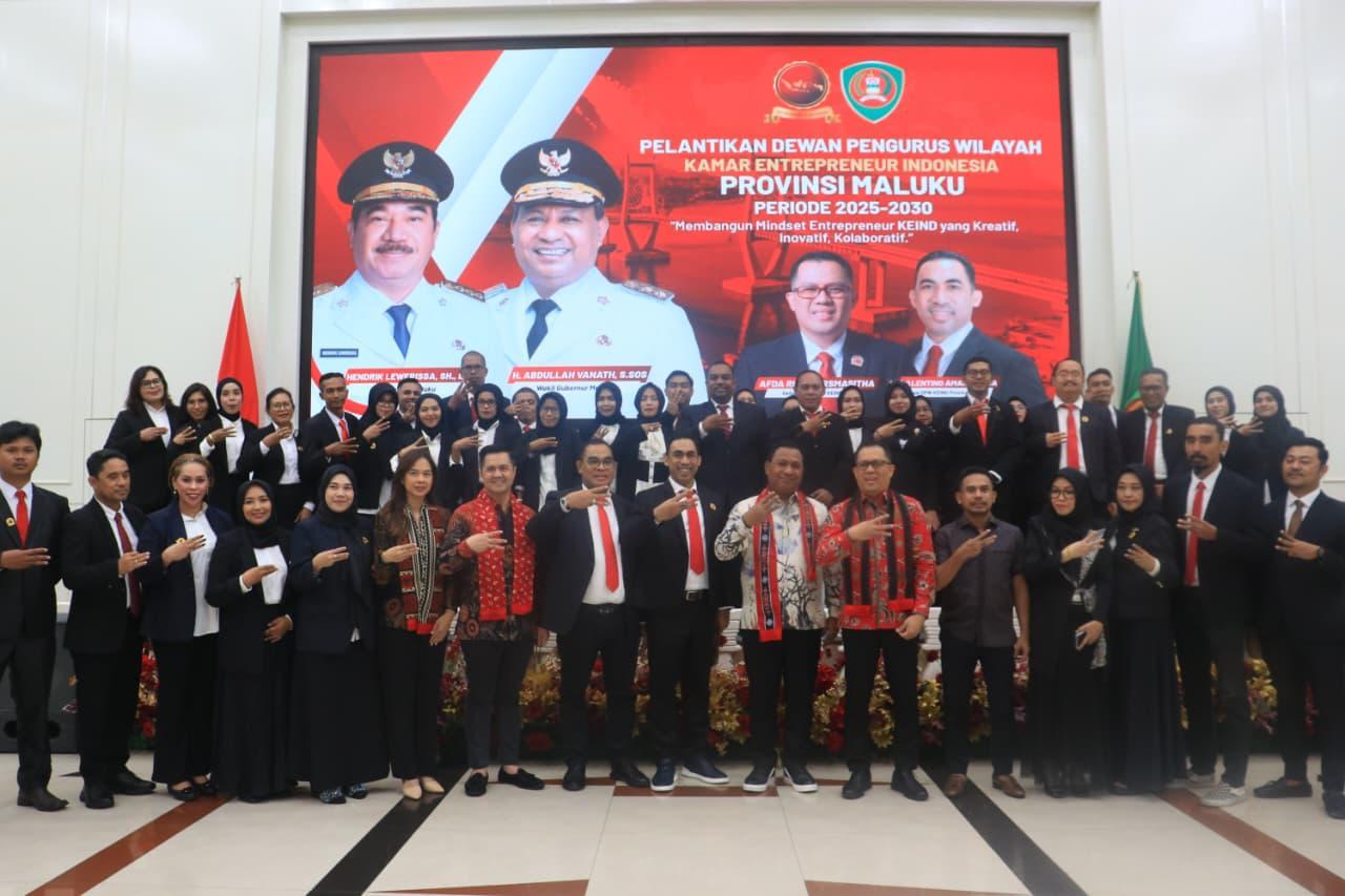 Referensimaluku.id, Ambon,- Wakil Gubernur Maluku H. Abdullah Vanath menghadiri dan melantik Pengurus Kamar Entrepreneur Indonesia (KEIND) periodesasi 2025- 2030 dan perhelatan Pameran UMKM Tahun 2025 di Aula Lantai 7 kantor Gubernur Maluku, Sabtu (18/10/2025).