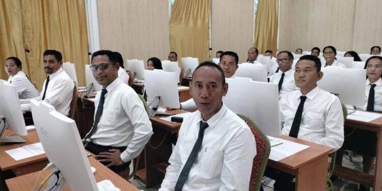 Referensimaluku.id, Tiakur – Pemerintah Kabupaten Maluku Barat Daya melaksanakan kegiatan Pengembangan Karier berbasis Metode Computer Assisted Test (CAT), yakni ujian Dinas Tingkat I bagi Pegawai Negeri Sipil Golongan II yang akan berpindah jenjang ke Golongan III yang diikuti oleh 61 peserta. , Ujian Dinas Tingkat II, yakni PNS Gologan III/d yang akan berpindah jenjang ke Golongan IV diikuti 24 peserta dan Ujian Penyesuaian Kenaikan Pangkat (UPKP), yakni penyesuaian gelar PNS yang sudah memiliki Ijasah Strata 1 bagi lulusan SMA dan SMA/ Paket C bagi lulusan SMP yang diikuti 34 peserta di Gedung CAT BKPSDM Maluku Barat Daya, Tiakur, Kamis (23/10/2025).
