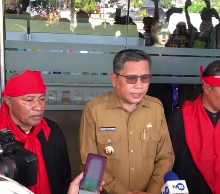 Referensimaluku.id,-Ambon – Wali Kota Ambon Bodewin Wattimena mediasi pertemuan antara pemilik Dian Pertiwi dengan masyarakat Rumah Tiga perwakilan dari mata rumah adat Hatulesila untuk membuka pemalangan larangan atau sasi adat Supermarket dan toko buku Dian Pertiwi, Seni (27/10/2025).