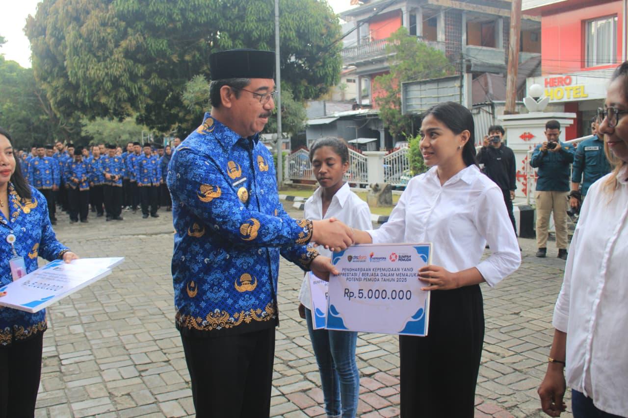 Upacara ditutup dengan pembacaan doa serta penyerahan penghargaan kepada pemuda berprestasi dan berjasa dalam kurun 2025. (RM-02)