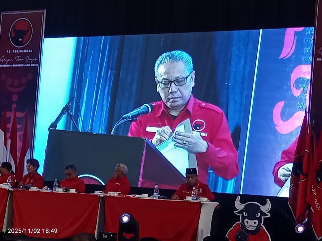 Surat Keputusan itu dibacakan langsung oleh Wasekjen Bidang Internal DPP PDI Perjuangan, Dolfie Othniel Fredric Palit, saat menggelar Konferensi Daerah (Koferda) dan Konferensi Cabang (Konfercab), yang bertempat diHotel Santika Premiere, Jln.Jenderal Sudirman, Batu Merah, Kecamatan Sirimau, Kota Ambon, Minggu (02/11/2025).