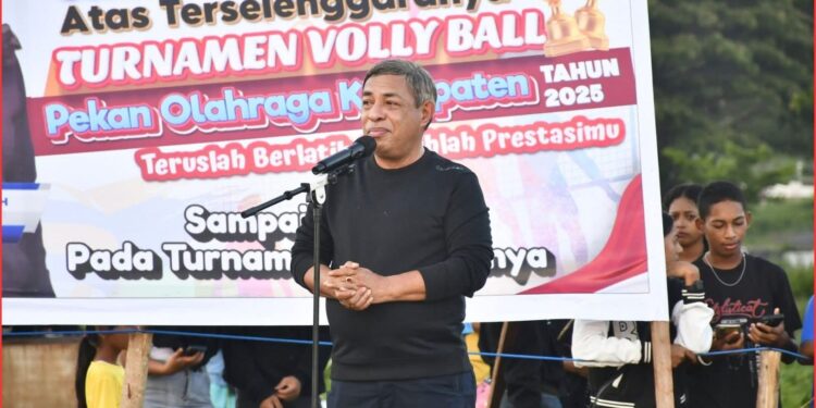 Referensimaluku.id, Tiakur –Bupati Maluku Barat Daya (MBD) Benyamin Thomas Noach secara resmi menutup Turnamen Bola Voli pada Pekan Olahraga Kabupaten (Porkab) MBD Tahun 2025. Penutupan kegiatan tersebut ditandai dengan sambutan sekaligus pernyataan penutupan secara resmi Bupati Noach di Lapangan Bola Voli Tiakur, Pulau Moa, Kamis (6/10/2025).