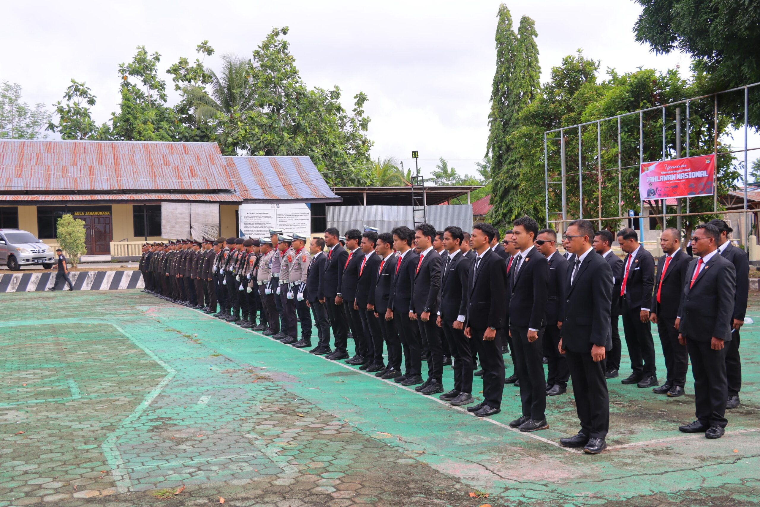 “Para pahlawan bukan sekadar nama yang terukir di batu nisan, melainkan cahaya yang menerangi jalan kita hingga hari ini. Mereka berjuang bukan demi dirinya sendiri, tetapi demi masa depan bangsa yang bahkan belum mereka kenal, yaitu kita semua yang berdiri di sini hari ini,” ucap Kapolres membacakan amanat Mensos.