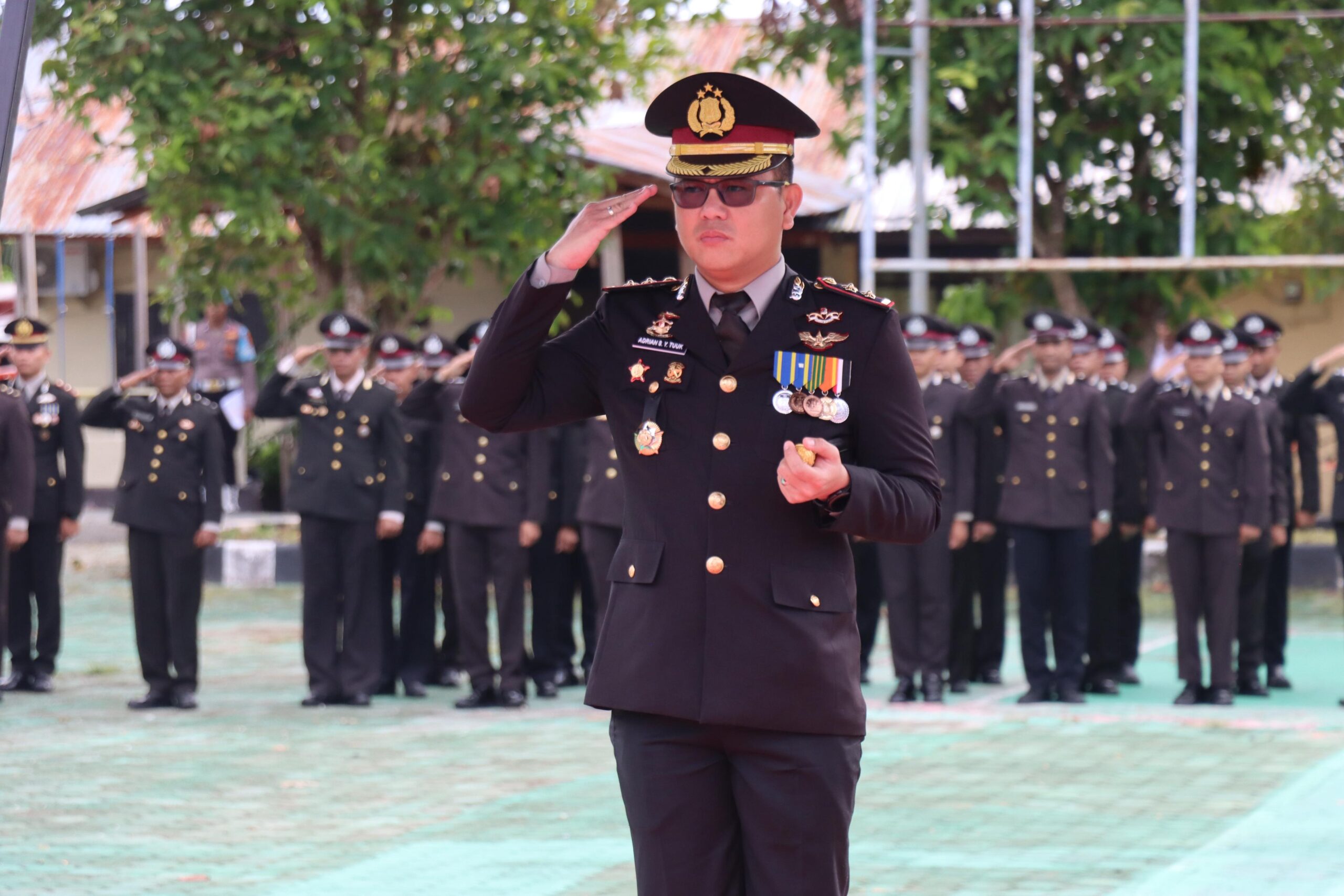 Upacara dipimpin langsung oleh Kapolres Tual, AKBP Adrian Soeharto Yonthan Tuuk, S.I.K., M.H, yang bertindak sebagai Inspektur Upacara. Bertindak sebagai Perwira Upacara yaitu Kabag SDM Polres Tual, AKP Sanrawali, sementara Komandan Upacara dipercayakan kepada Pamapta 3 SPKT Polres Tual, IPDA Nelson Grey Jalmav.