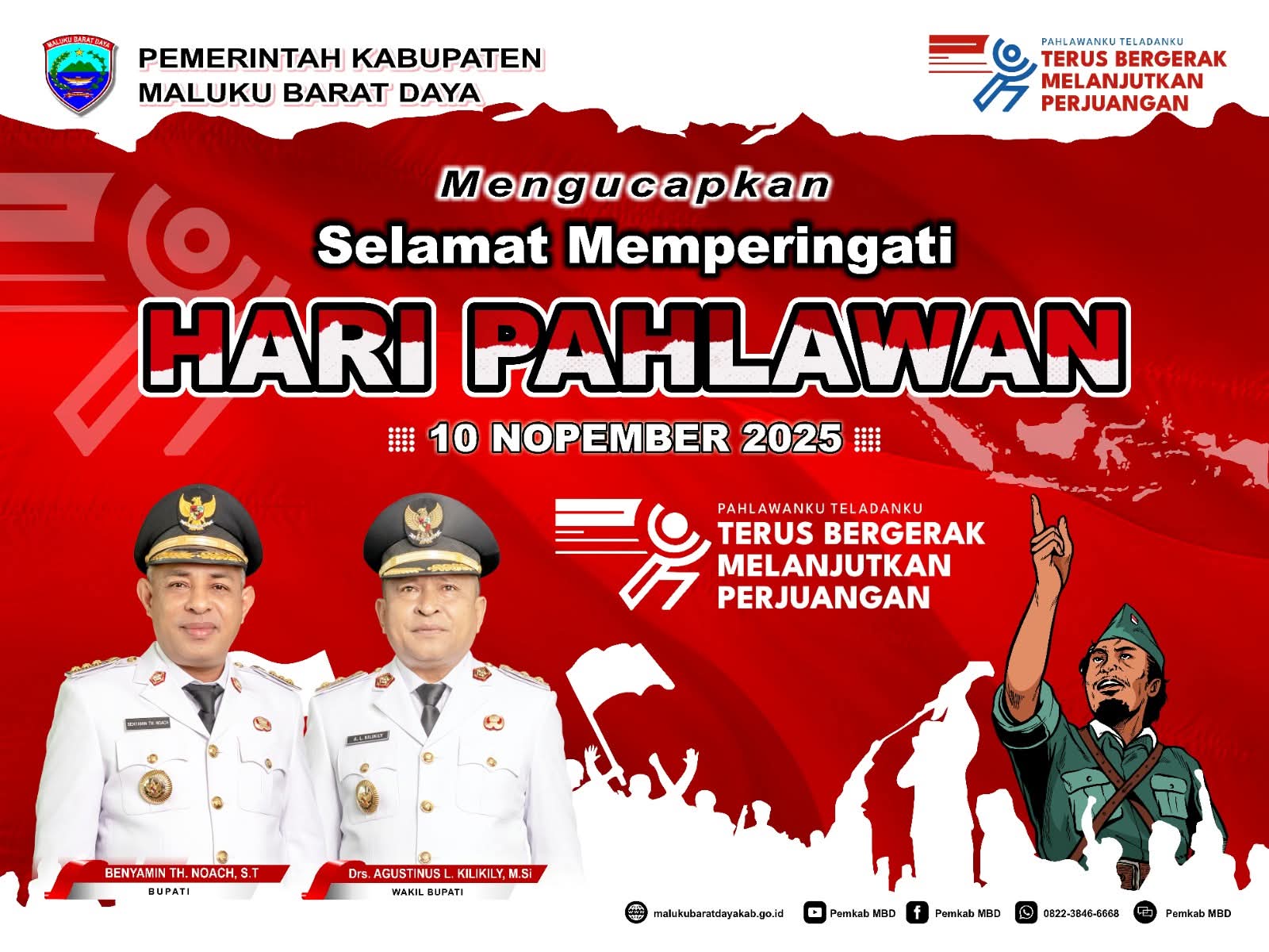 Pemerintah Kabupaten MBD mengajak seluruh masyarakat untuk terus menyalakan semangat perjuangan dalam bentuk kerja nyata, dedikasi, dan pengabdian bagi kemajuan MBD dan Indonesia. “Pahlawanku Teladanku, Terus Bergerak, Melanjutkan Perjuangan.” (RM-05)