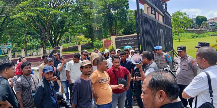 Pantauan Referensimaluku,id di Mapolda Maluku, para orator secara bergantian menyampaikan kepada Kapolda Maluku agar pelaku segera di tangkap untuk di proses secara hukum.