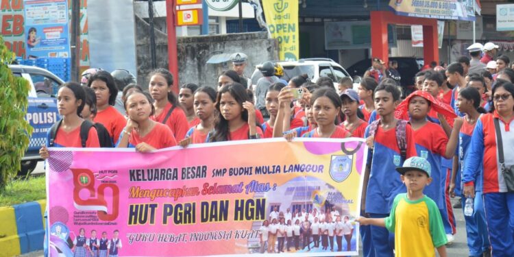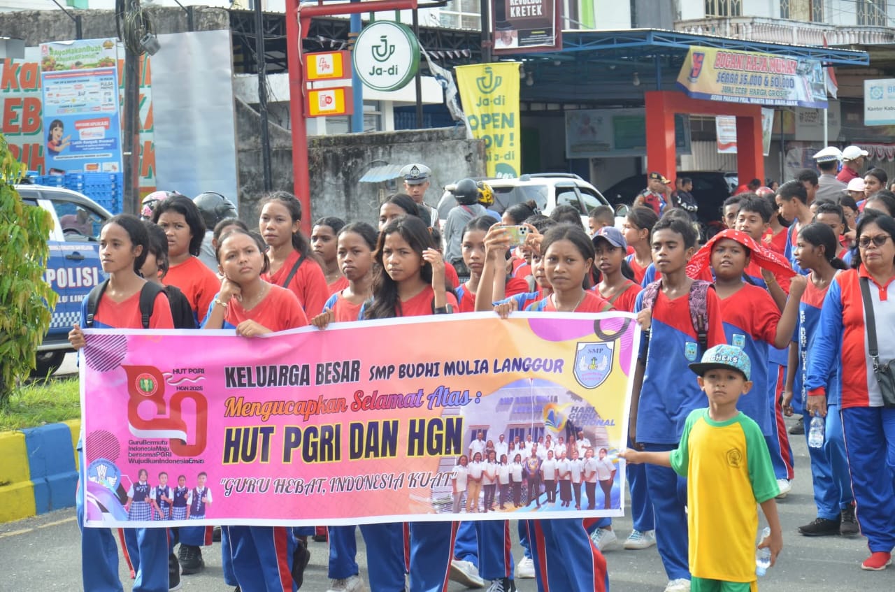 Referensimaluku.id,-LANGGUR-Pengurus Persatuan Guru Republik Indonesia (PGRI) Kabupaten Maluku Tenggara menggelar kegiatan jalan santai dalam rangka menyambut Hari Guru Nasional (HGN) tahun 2025. Kegiatan yang berlangsung di pelataran SMP Budi Mulia Langgur pada Jumat (21/11/2025) itu diikuti ratusan peserta dari unsur pemerintah daerah, tenaga pendidik, dan siswa.