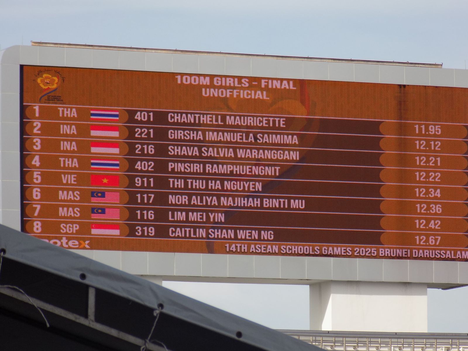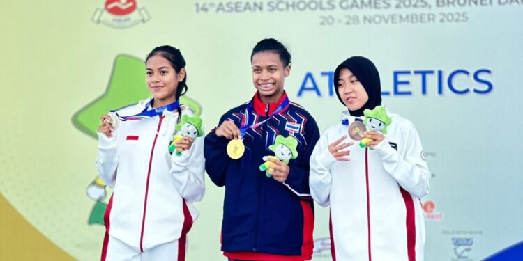 Referensimaluku.id, Ambon – Pelari andalan Indonesia Girsha Imanuela Saimima mampu menyabet perak di nomor final lari 100 meter puteri “ASEAN School Games” di Brunai Darussalam, 23-26 November 2025. Tampil penuh semangat di partai pamungkas di nomor spesial jarak pendek di Indoor Stadium Hasanah Bolkiah, Brunai Darussalam, Minggu (23/11) waktu setempat, atlet binaan Pusat Pendidikan dan Latihan Pelajar (PPLP) Maluku itu akhirnya finish di urutan kedua dengan mencatat waktu 22.12 menit.