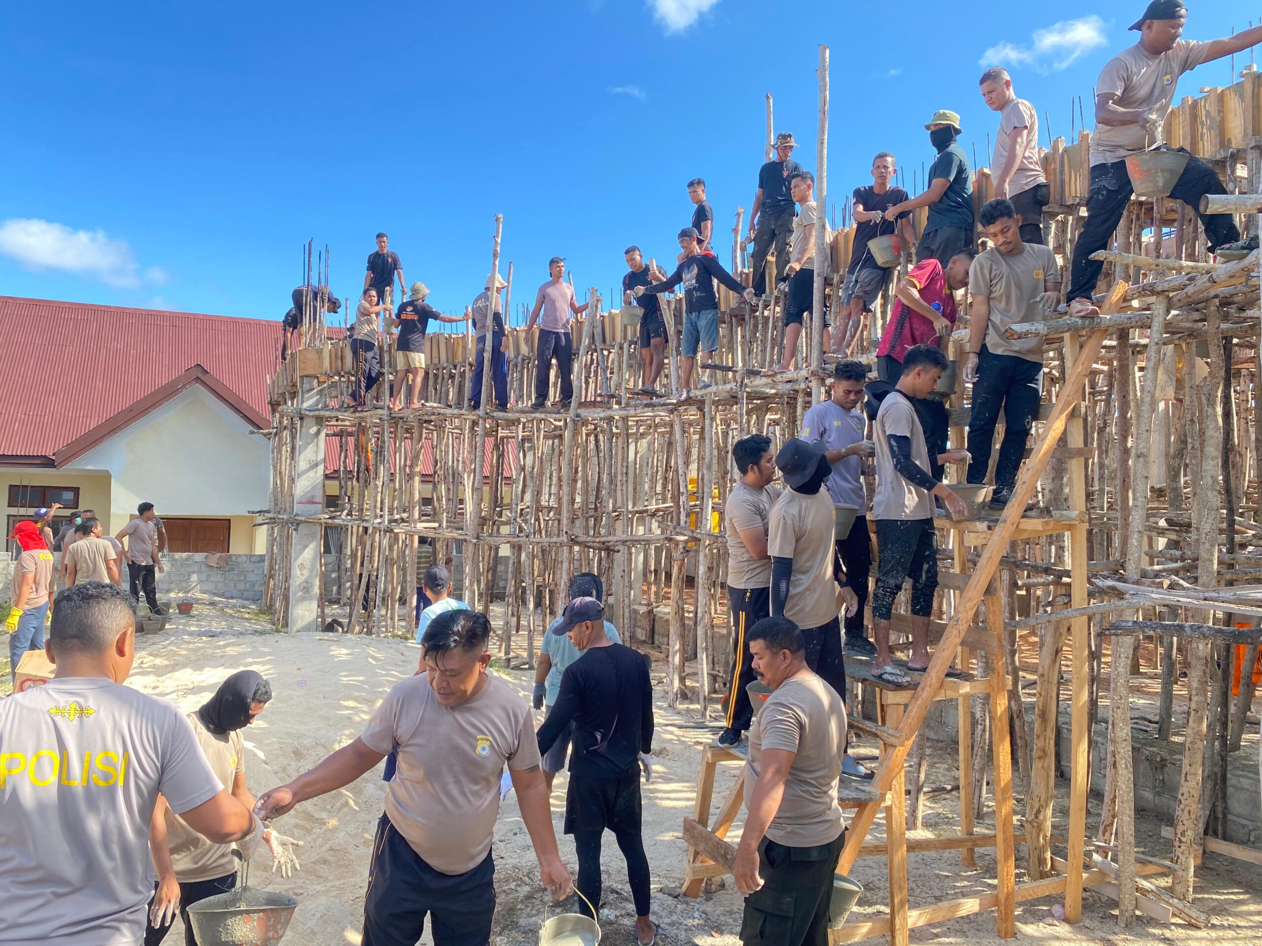 Kegiatan Bakti Sosial oleh Personil Polres Maluku Barat Daya dan Personil Brimob Kompi 4 Yon C Pelapor Moa dengan bergotong royong bersama Jemaat GSJA Tiakur melaksanakan Pengecoran pembangunan Gedung Gereja GSJA Tiakur, kata Kapolres MBD AKBP Budhi Suriawardhana S.I.K.