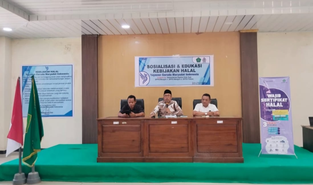Referensimaluku.id,-TUAL — Satuan Tugas (Satgas) Halal Kementerian Agama Kota Tual menggelar Sosialisasi dan Edukasi Kebijakan Jaminan Produk Halal kepada karyawan dan karyawati Yayasan Garuda Maryadat Indonesia, selaku pengelola program makanan bergizi gratis di wilayah Kota Tual, Sabtu (29/11/2025).