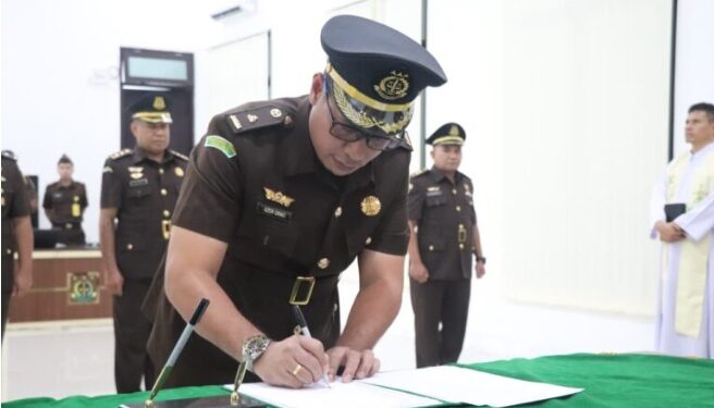 Pelantikan tersebut bersama sejumlah Pejabat Esselon IV lingkup Kejati Maluku di Aula Sasana Adhyaksa, Senin (9/2/2026).