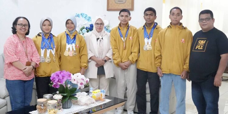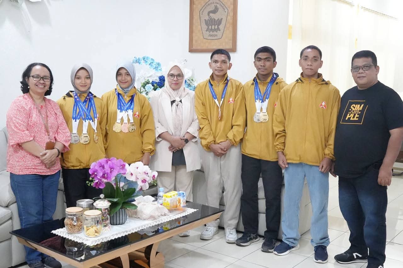 Total medali yang diraih terdiri dari lima medali emas, dua perak, dan dua perunggu. Prestasi tersebut ditandai dengan penyerahan simbolis medali oleh kontingen kepada Wakil Rektor Bidang Kemahasiswaan, Hubungan Masyarakat dan Alumni Unpatti, Dr. Nur Aida Kubangun, Jumat (13/2) di ruang kerjanya.