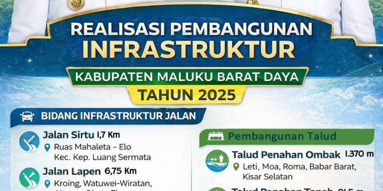 Referensimaluku.id, TIAKuR– Genap satu tahun masa jabatan Bupati Maluku Barat Daya (MBD), Benyamin Th. Noach, S.T., dan Wakil Bupati Agustinus L. Kilikily, M.Si., pemerintah daerah mengklaim telah melakukan terobosan signifikan dalam sektor pembangunan infrastruktur. Program kerja yang dicanangkan sejak awal kepemimpinan dinilai mulai menunjukkan hasil nyata di lapangan, mengubah wajah kabupaten kepulauan ini menjadi lebih terhubung dan layak huni.