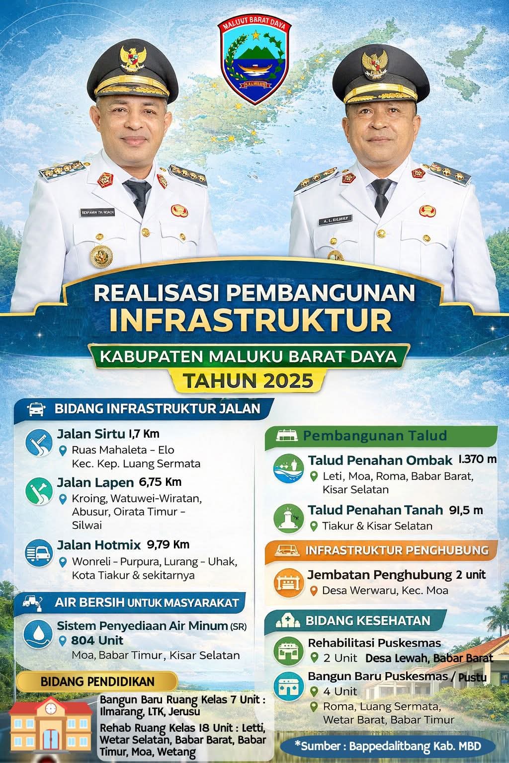 Salah satu program yang paling disorot adalah perluasan akses air bersih. Mengingat tantangan geografis MBD yang sering mengalami kekeringan di musim kemarau, pembangunan jaringan pipa dan sumber air baru menjadi prioritas mendesak. “Akses air bersih adalah hak dasar. Kami berupaya memastikan lebih banyak desa yang terlepas dari krisis air berkat pembangunan infrastruktur talud dan jaringan perpipaan tahun ini,” jelas pihak terkait.