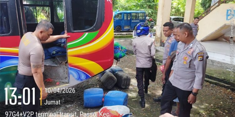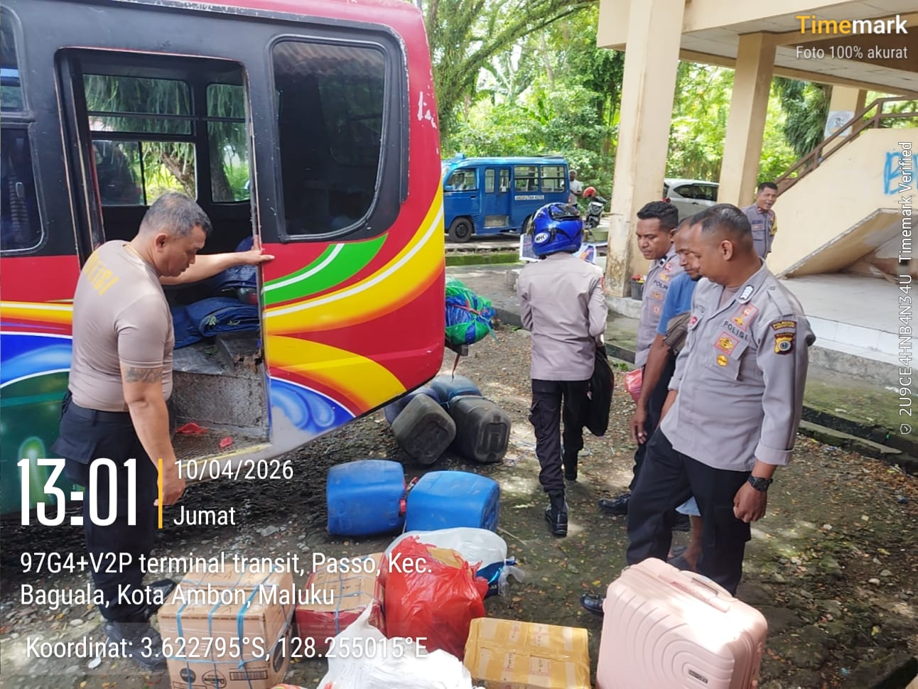 Dalam Kegiatan Rutin Yang Ditingkatkan (KRYD) pada Jumat siang (10/4/2026), petugas berhasil mengamankan 120 liter minuman keras tradisional jenis sopi yang diselundupkan melalui angkutan umum lintas pulau.