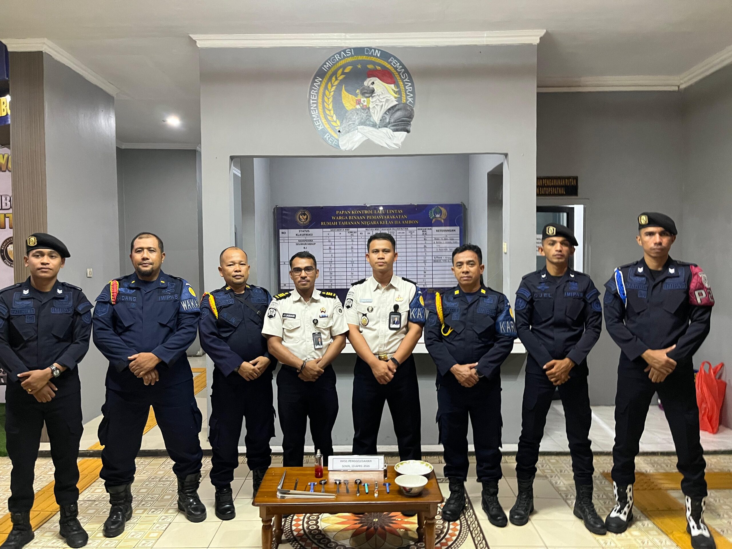 Referensimaluku.id, -AMBON – Rumah Tahanan Negara (Rutan) Kelas IIA Ambon kembali menunjukkan keseriusannya dalam menjaga keamanan dan ketertiban lembaga pemasyarakatan. Dalam operasi penggeledahan mendadak (sidak) yang digelar pada Senin (13/4/2026), petugas berhasil memastikan lingkungan rutan steril dari peredaran narkoba dan alat komunikasi ilegal.