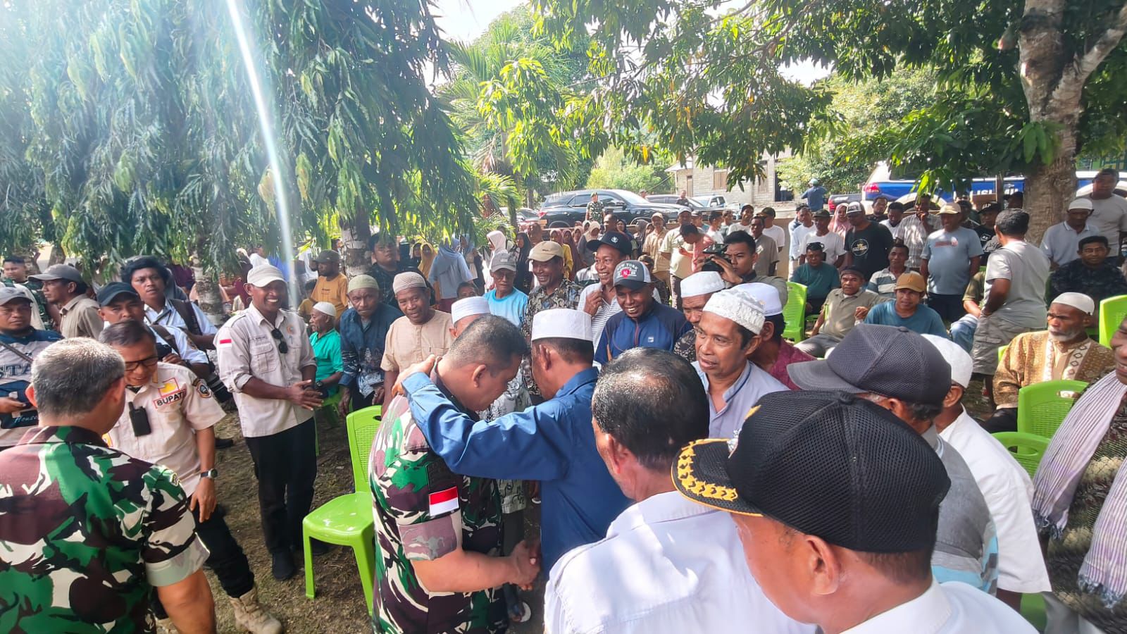 “Kami hadir di sini bukan hanya sebagai aparat keamanan, tetapi sebagai bagian dari keluarga besar masyarakat Maluku Utara. Persaudaraan kita jauh lebih berharga daripada perbedaan sesaat,” ujar Pangdam di tengah warga.