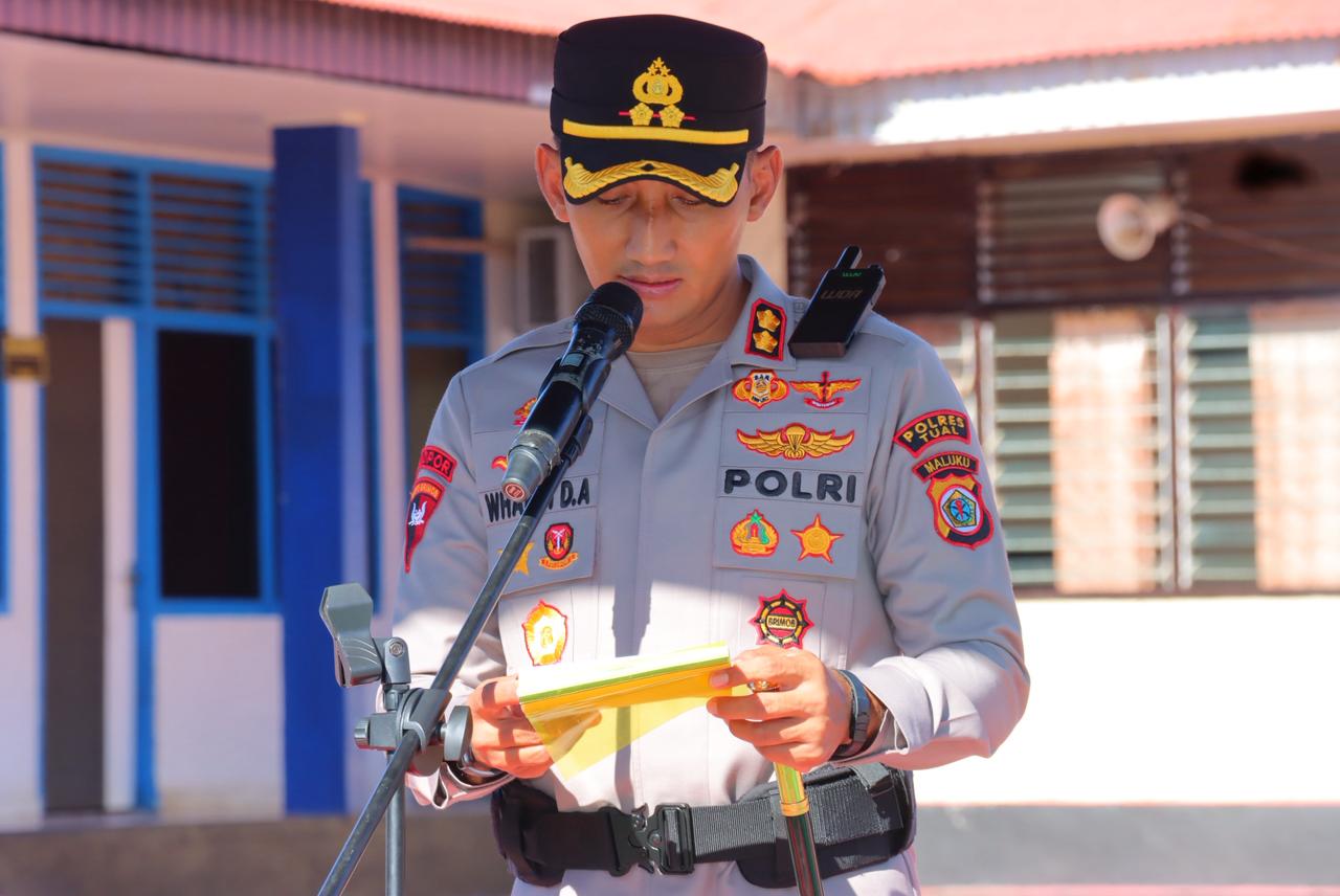 Upacara tersebut dipimpin langsung oleh Kapolres Tual, AKBP Whansi Des Asmoro, S.H., S.I.K., selaku inspektur upacara. Turut hadir sebagai perwira upacara Kabag SDM Polres Tual AKP Sanrawali, serta komandan upacara IPDA Maxy Leweherilla, S.Sos.