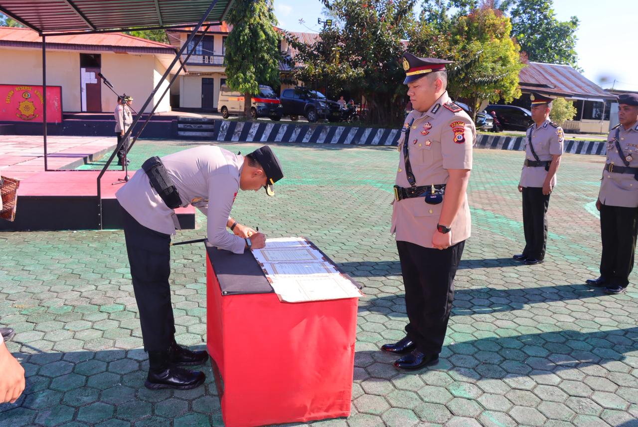 Referensimaluku. Id, -Tual – Kepolisian Resor (Polres) Tual menggelar upacara serah terima jabatan (sertijab) sejumlah pejabat utama, yakni Kabagren, Kasatsamapta, dan Kapolsek Dullah Utara, bertempat di Lapangan Apel Polres Tual, Kamis (16/4/2026).