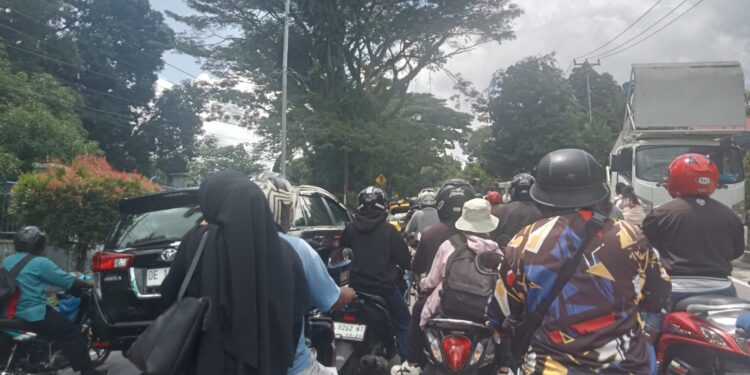 Referensimaluku.id, -AMBON – Ruas jalan utama penghubung Kota Ambon dari kawasan Galala hingga Lateri lumpuh total pada Kamis (16/4/2026). Antrean kendaraan mengular panjang hingga ratusan meter, memaksa pengendara roda dua maupun roda empat merayap pelan atau bahkan berhenti sama sekali di terik matahari.