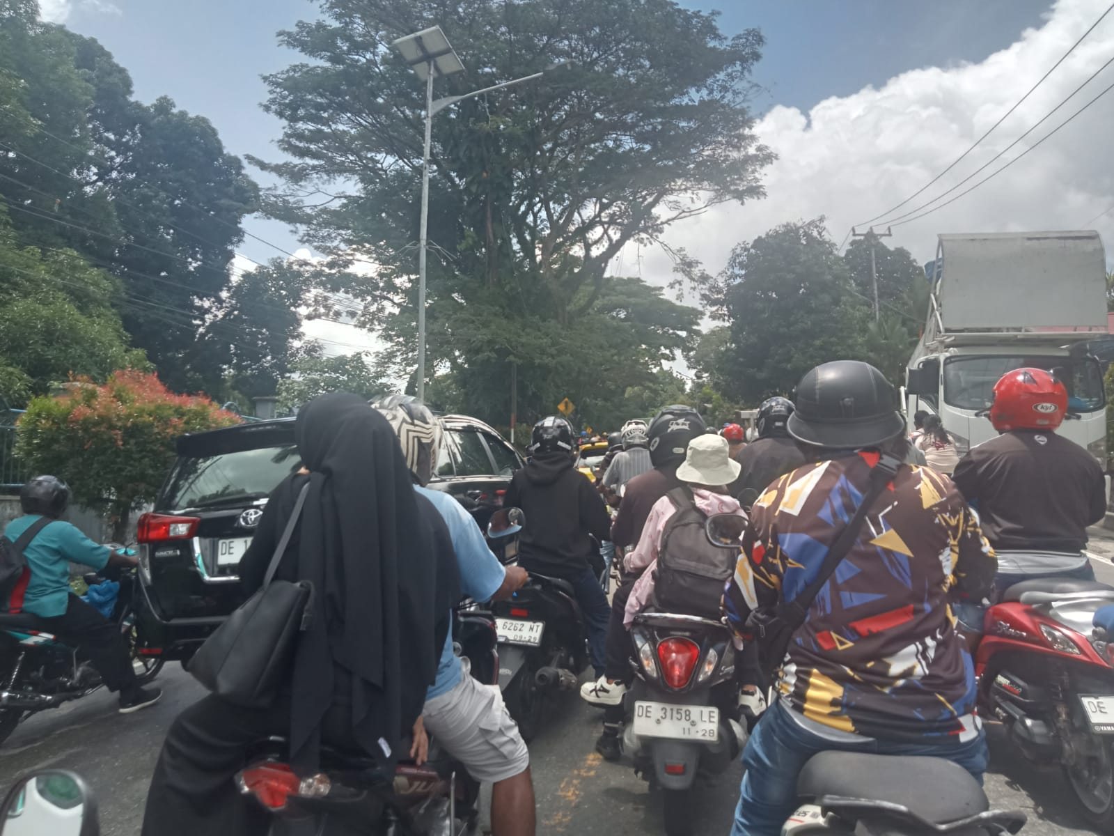 “Padat sekali, Mas. Biasanya lancar, hari ini bisa satu jam cuma buat lewat dari Galala ke Lateri. Padahal saya ada urusan mendesak,” keluh salah seorang pengendara ojek online, sambil menyeka keringat di balik helmnya.