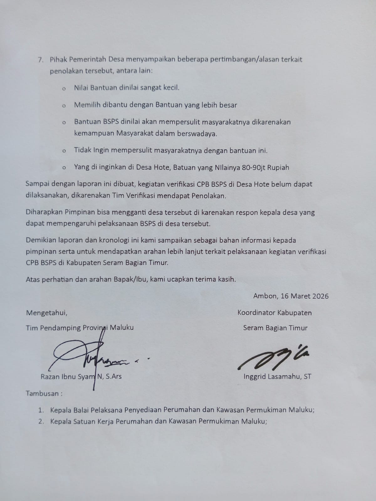 2. Pemisahan Tanggung Jawab: Tegaskan bahwa penolakan ini adalah tindakan oknum pribadi, bukan kehendak rakyat Negeri Hote yang tetap mendukung program pemerintah.