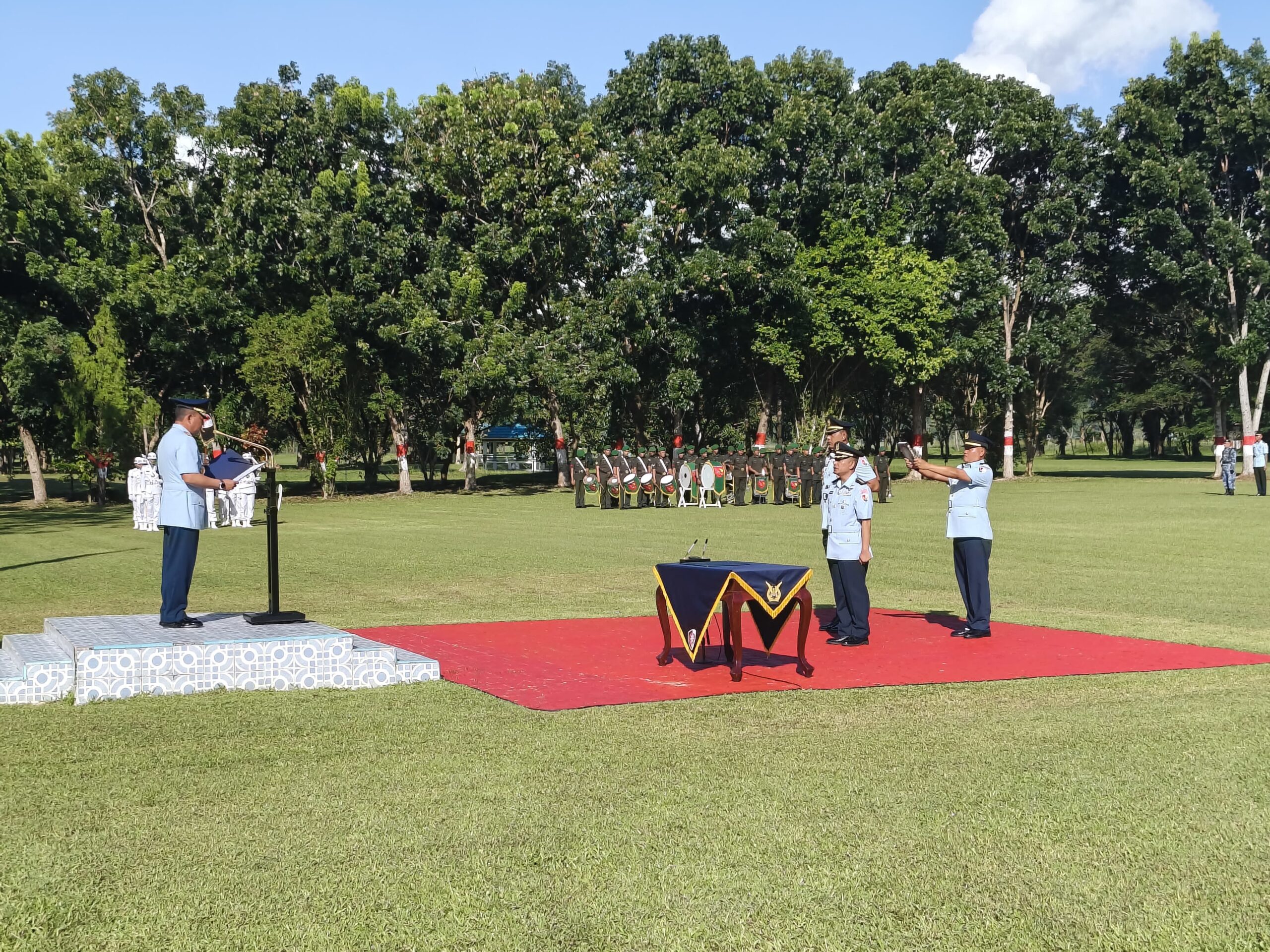 Upacara tersebut dihadiri oleh Inspektur Upacara, Panglima Komando Angkatan Udara III, Marsekal Muda TNI Dr. Ajar Aditama Djojo Sugito, S.T., M.M., M.Han, Serta membacakan Surat Keputusan Kasau Nomor: Kep/3/PKS/III/2026 tanggal 3 Maret 2026 tentang pemberhentian dari dan pengangkatan dalam jabatan di lingkungan TNI AU.