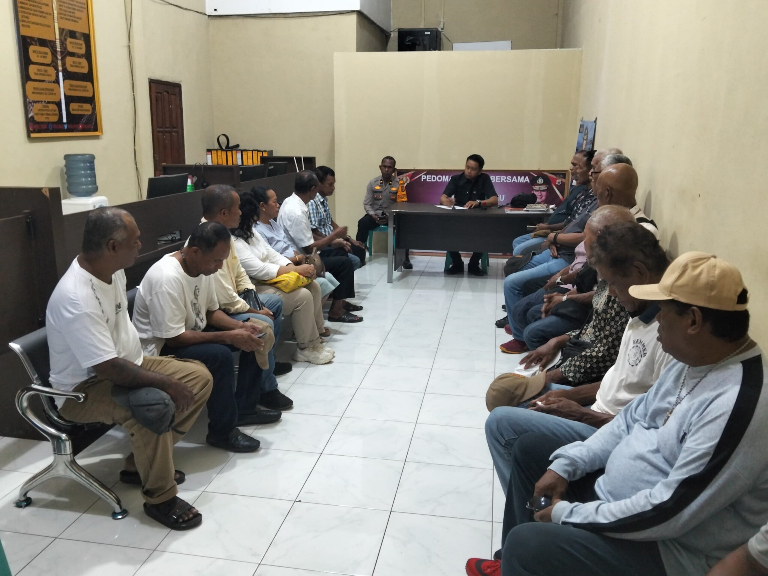 Referensimaluku.id, -Langgur – Upaya menjaga stabilitas keamanan pasca insiden penganiayaan yang mengakibatkan korban meninggal dunia di Bandara Karel Satsuitubun Langgur terus dilakukan. Pada Sabtu, 25 April 2026, pukul 10.30 WIT, berlangsung pertemuan antara perwakilan Marga asal Ohoi Holath dan Marga Ohoi Tutrean di Mapolres Maluku Tenggara, tepatnya di Ruangan SPKT.